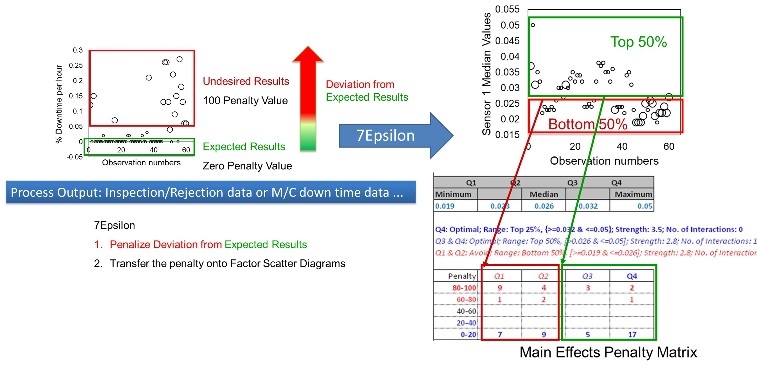 Visualise main effects and interactions with penalty matrices. They map performance deviations to key variables, highlight optimal/avoid regions, and compare with binary interactions for deeper insights.